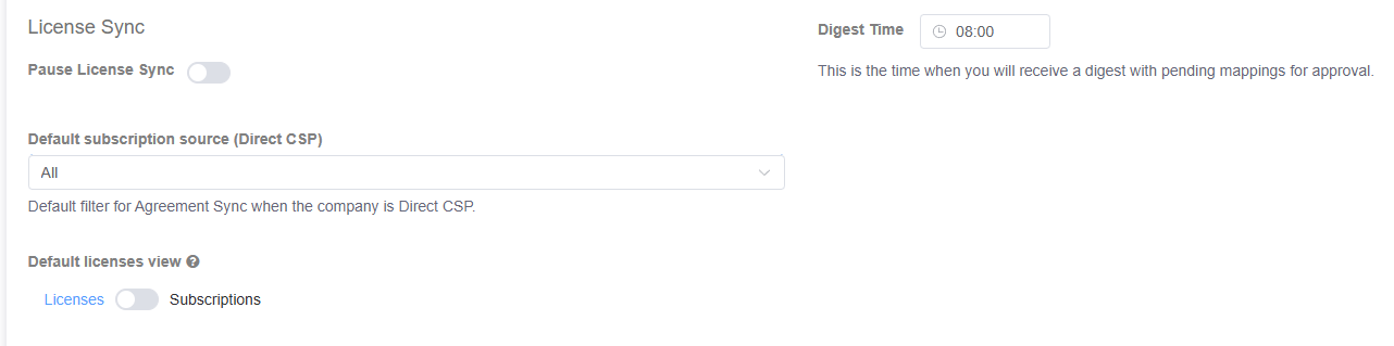 - Digest Time - When to send alerts for any pending automated license mappings that are waiting approval