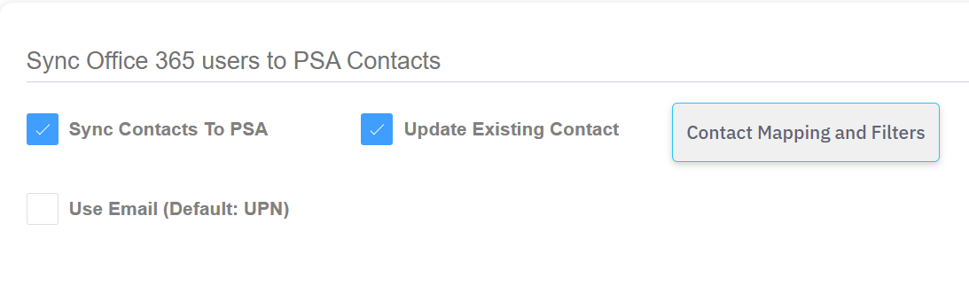 Our contact sync functionality provides flexible options for syncing the customers Microsoft 365 Contacts to your PSA.