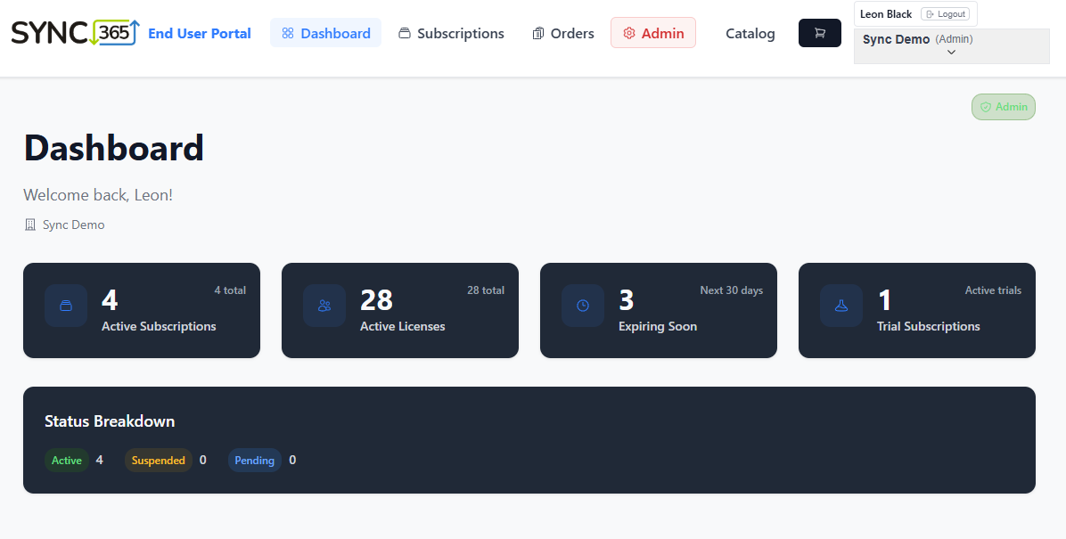 If you have been provided access to order new subscriptions, you will have a Catalog menu available.