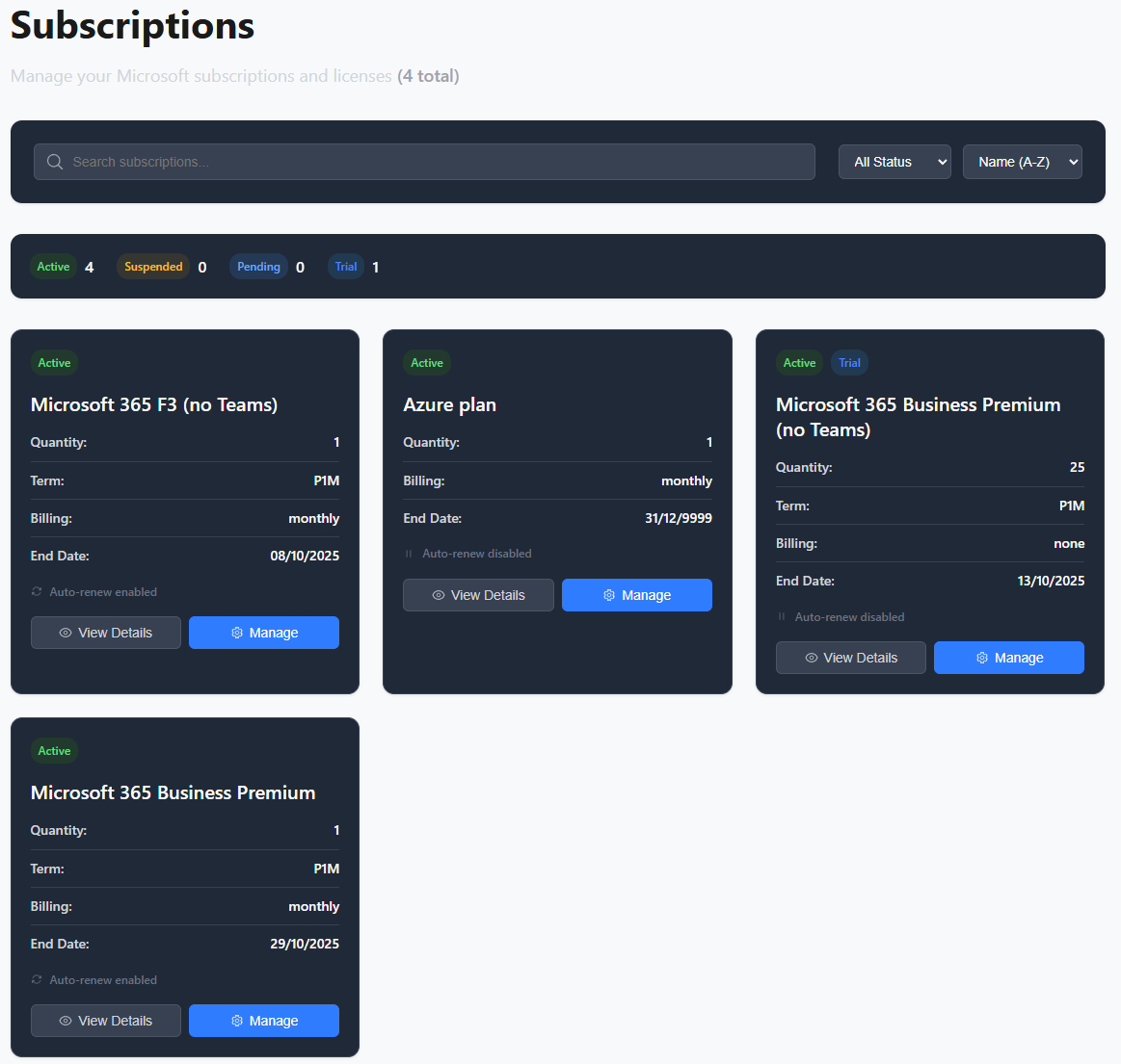 You can click on Manage from the subscription box or from the view details box to access the subscription management